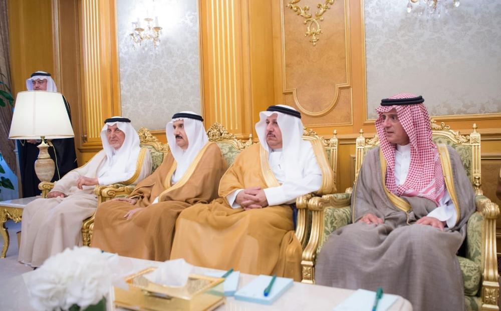 حضر الاستقبال، الأمير خالد بن فهد بن خالد، والأمير تركي الفيصل، والأمير فهد بن عبدالله بن محمد، والأمير خالد بن سعد بن فهد، والأمير محمد بن فهد بن محمد، ووكيل الحرس الوطني للقطاع الغربي الأمير الدكتور خالد بن فيصل بن تركي، والأمير سطام بن سعود بن عبدالعزيز، والأمير الوليد بن طلال بن عبدالعزيز، والأمير الدكتور بندر بن عبدالله بن تركي، والأمير نواف بن محمد بن عبدالله، والأمير فيصل بن سعود بن محمد، والأمير تركي العبدالله الفيصل، والأمير نواف بن سعود بن سعد، والأمير نواف بن ناصر بن عبدالعزيز، والأمير الدكتور بندر بن سلمان بن محمد، والأمير تركي بن عبدالله بن مساعد، والأمير عبدالعزيز بن هذلول بن عبدالعزيز، والأمير فهد بن خالد بن عبدالله، والأمير فيصل العبدالله الفيصل، والأمير سعود بن عبدالله بن عبدالعزيز، والأمير سعود بن مشعل بن عبدالعزيز، ووكيل إمارة منطقة مكة المكرمة المساعد للحقوق الأمير فيصل بن محمد بن سعد، والأمير سعود بن عبدالله بن جلوي، والأمير فيصل بن نواف بن عبدالعزيز، والأمير عبدالمجيد بن عبدالإله بن عبدالعزيز، والأمير سلطان بن عبدالله بن عبدالعزيز، والأمين العام لمجلس الوزراء الأمير عبدالرحمن بن محمد بن عياف.