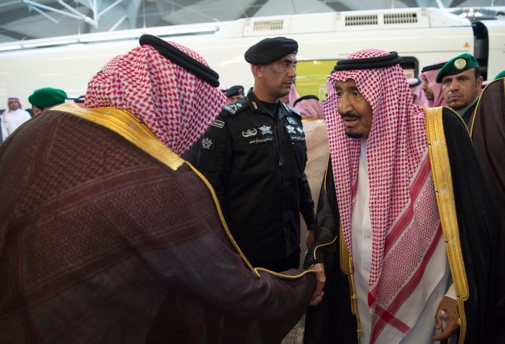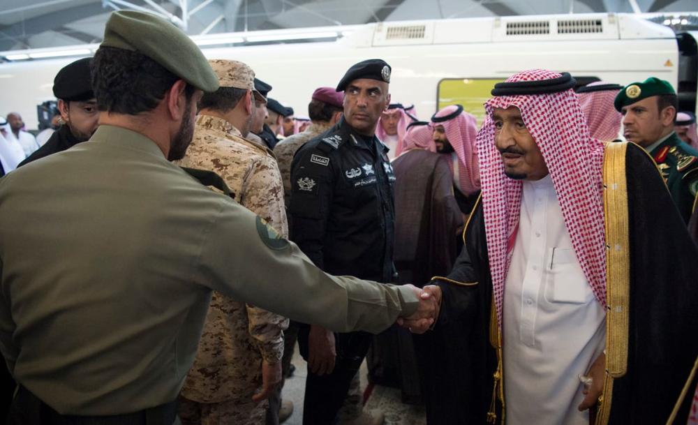 وكان في استقباله لدى وصوله محطة قطار الحرمين السريع في المدينة المنورة، أمير منطقة المدينة المنورة الأمير فيصل بن سلمان بن عبدالعزيز، وولي العهد نائب رئيس مجلس الوزراء وزير الدفاع الأمير محمد بن سلمان بن عبدالعزيز.