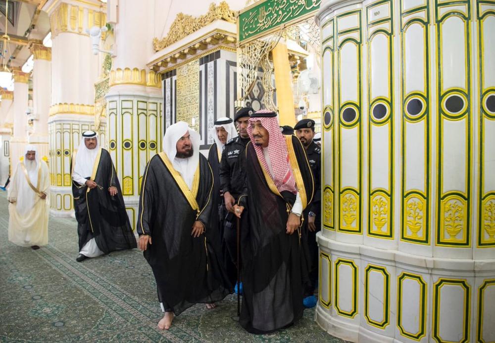 زار خادم الحرمين الشريفين الملك سلمان بن عبدالعزيز آل سعود فور وصوله المدينة المنورة اليوم (الثلاثاء) المسجد النبوي.