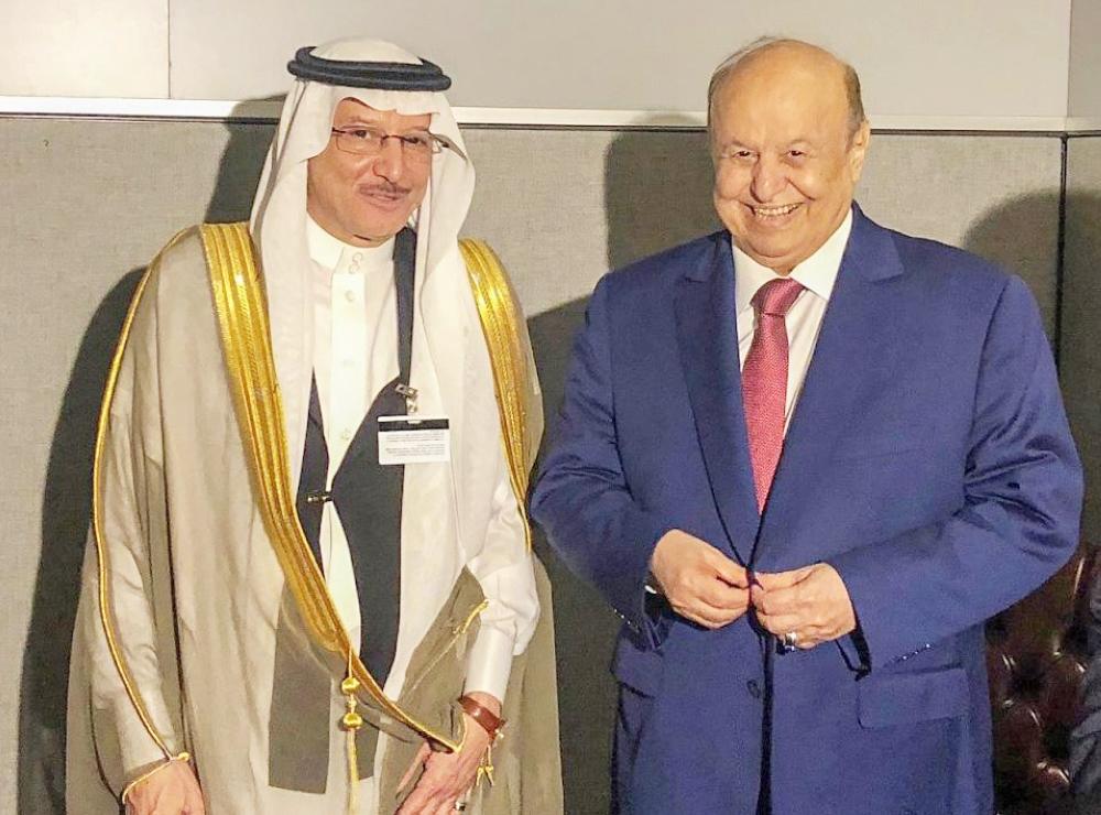 الأمين العام لمنظمة التعاون الإسلامي ملتقيا الرئيس هادي في نيويورك.