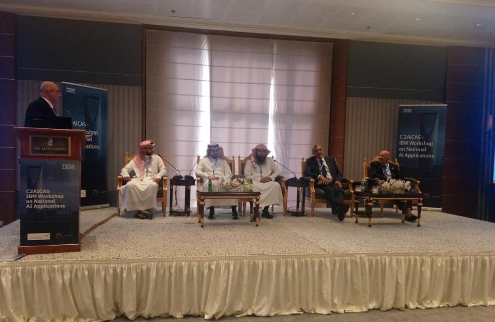 نيابة عن المستشار رئيس مجلس إدارة مركز الدراسات المتقدمة للقيادة والسيطرة والذكاء الاصطناعي سعود بن عبدالله القحطاني، افتتح المشرف العام على المركز الدكتور عبد الله بن شرف الغامدي ورشة عمل بعنوان (التطبيقات الوطنية للذكاء الاصطناعي) بالتعاون مع شركة IBM، وذلك بحضور نخبة من المختصين والمهتمين من عدة جهات حكومية وخاصة.
