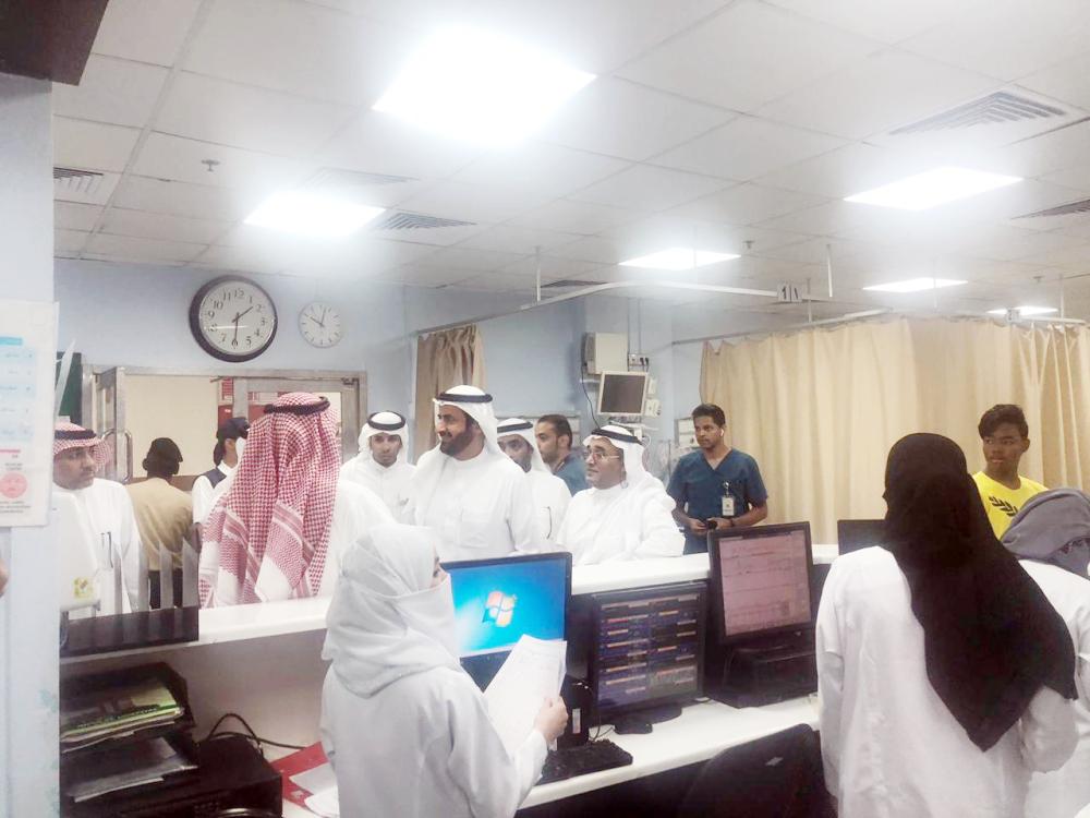 وزير الصحة خلال جولته داخل مستشفى الملك فهد العام. عكاظ