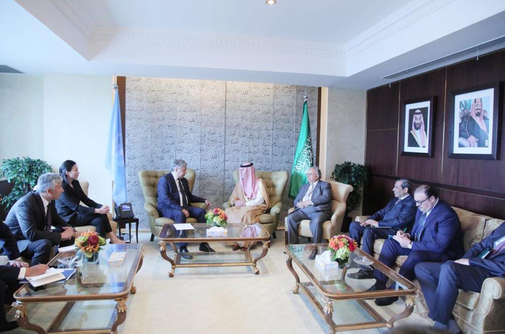 حضر اللقاءات مندوب المملكة الدائم لدى الأمم المتحدة عبدالله المعلمي، ووكيل وزارة الخارجية للشؤون الدولية المتعددة السفير الدكتور عبدالرحمن الرسي.
