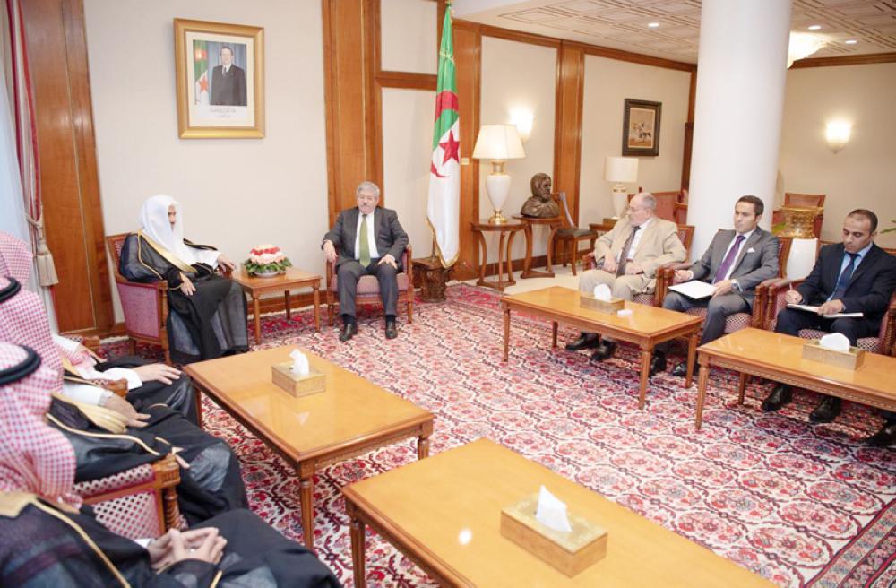 بحث رئيس الحكومة الجزائرية أحمد أويحيى، مع الأمين العام لرابطة العالم الإسلامي الشيخ الدكتور محمد بن عبد الكريم العيسى، الذي يقوم بزيارة رسمية للجزائر، عدداً من الموضوعات ذات الاهتمام المشترك ومجالات التنسيق والتعاون الثنائي بين الرابطة والفعاليات الجزائرية النظيرة، منوهاً بدور الرابطة.
