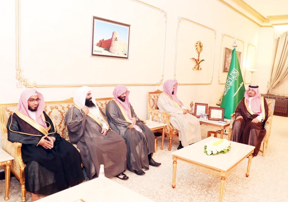 أمير الشمالية خلال لقائه رئيس المحكمة بعرعر وعددا من القضاة. (عكاظ)
