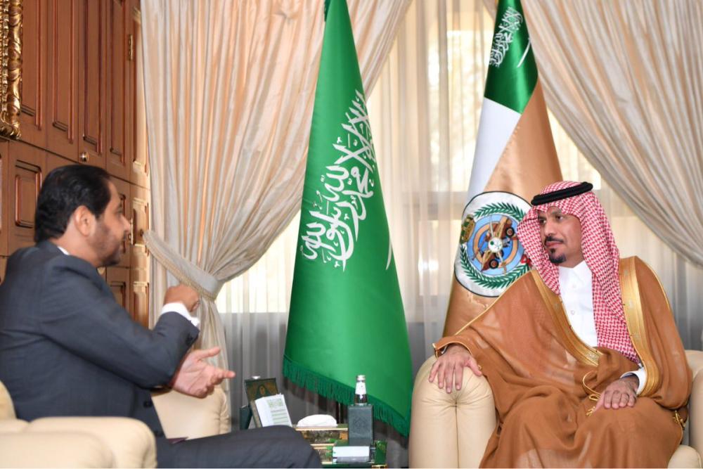 استقبل وزير الحرس الوطني الأمير خالد بن عبدالعزيز بن عياف في مكتبه بالوزارة اليوم (الأربعاء)، عميد السلك الدبلوماسي سفير جمهورية جيبوتي لدى المملكة ضياء الدين سعيد بامخرمة، والوفد المرافق له.