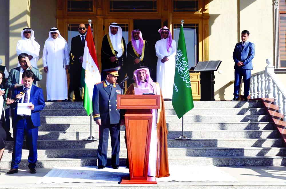 الربيعة أثناء كلمته في حفل تدشين المبنى الجديد في طاجكستان. (واس)