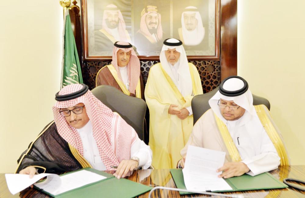 الأمير خالد الفيصل يشهد توقيع اتفاقية رعاية الموهوبين. (عكاظ)
