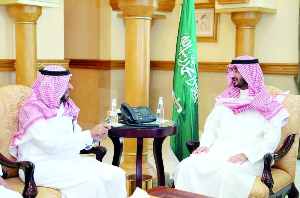 الأمير عبدالله بن بندر مستقبلا رئيس هيئة الأرصاد. (عكاظ)