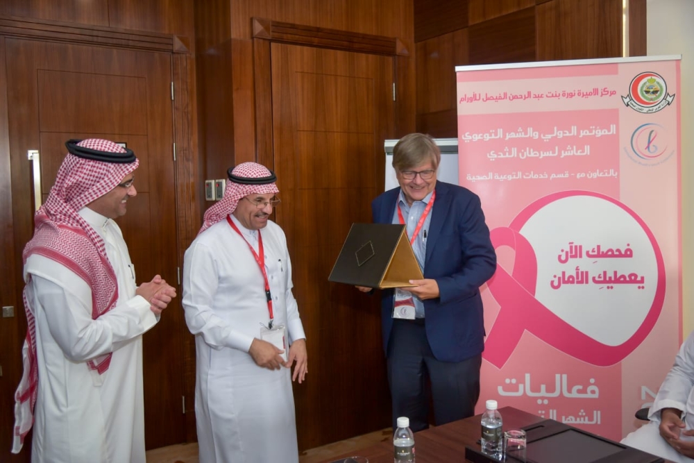 وناقش المؤتمر العالمي الذي عقد بمدينة الملك عبدالعزيز الطبية بجدة واستمر يومين، بحضور أكثر من 2000 مشارك من مختلف القطاعات الصحية بالمملكة، آخر التطورات في تشخيص وعلاج سرطان الثدي وفتح قنوات للتعاون بين الأطباء السعوديين والأطباء الروّاد من الخارج لعلاج مرضى السرطان، وكذلك تقوية العلاقات بين القائمين لعلاج مرض السرطان وتوحيد طرق العلاج بين الأطباء في المملكة وبلدان العالم المتطورة في هذا المجال، وكذلك توطيد العلاقات مع الباحثين للحصول على أفضل النتائج، وتمت مناقشة 12 ورقة عمل من خلال 28 جلسة شملت على عدة مواضيع من أبرزها: الجديد في أشعة تصوير الثدي وما هو التأثير السريري، وأشعة تصوير الثدي بعد العلاج لسرطان الثدي، ودور العلاج الإشعاعي بعد استئصال الثدي، وكيفية علاج عودة المرض موضعياً بعد استئصاله، والمرحلة المبكرة من سرطان الثدي الإيجابي «هيرتو» متى نفعل الأقل ومتى نحتاج إلى المزيد لعلاج سرطان الثدي في المراحل المبكرة، والعلاج المناعي لسرطان الثدي ثلاثي السلبية متى ومن يحتاج العلاج، وعلاجات جديدة لسرطان الثدي التاجي و«هيرتو» ما هو الجديد في الأفق، ومنظور الأورام الإشعاعي، وعلم الأورام الجراحي، وعلم الأورام الطبي.