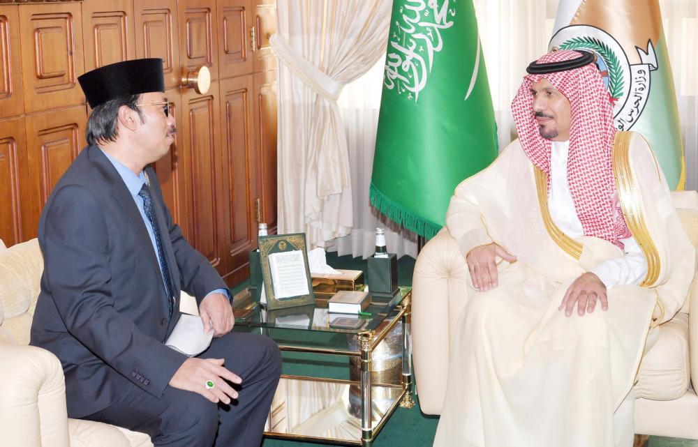 الأمير خالد بن عياف مستقبلا سفير إندونيسيا أمس في الرياض. (عكاظ)