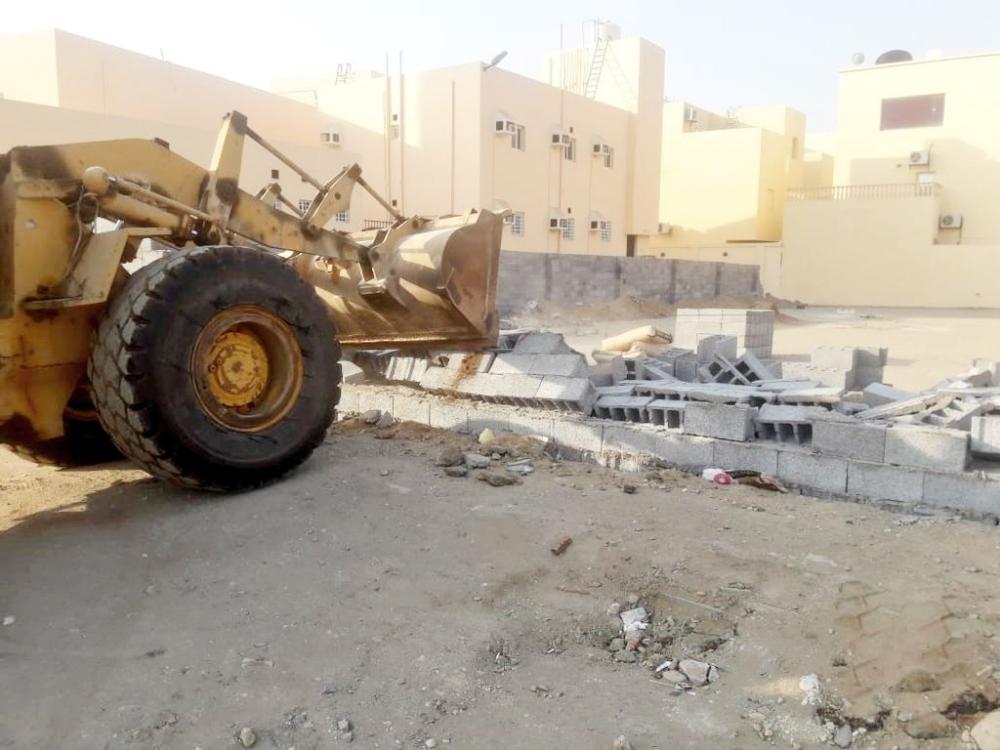 آلية البلدية أثناء إزالة التعديات. (عكاظ)