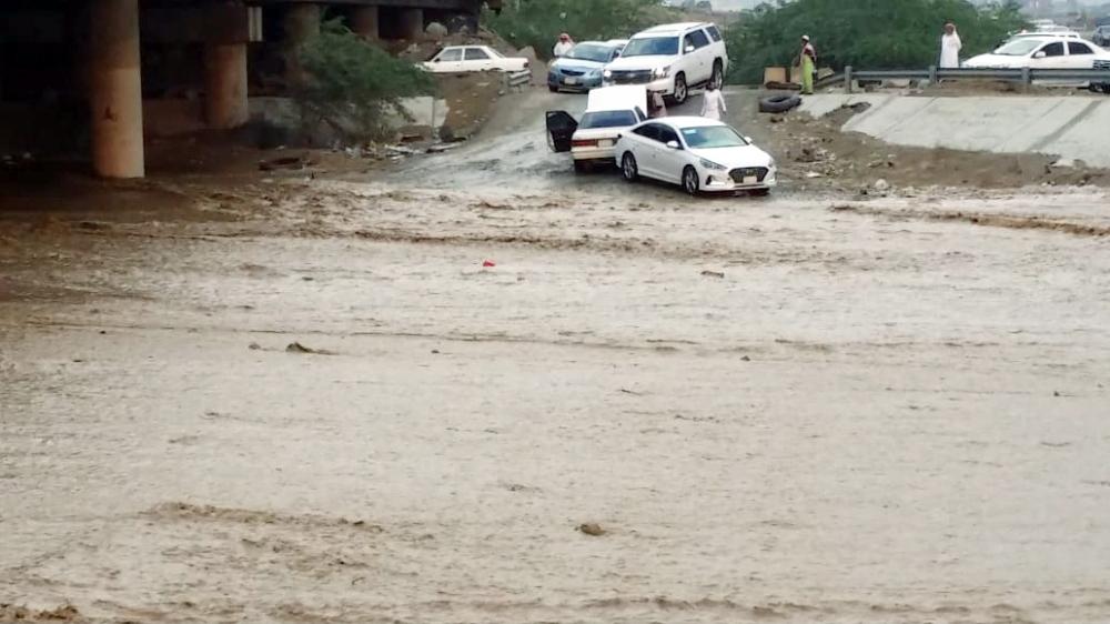 30 تماساً كهربائياً واحتجاز مركبات في أمطار مكة.. والضباب يغلق «الهدا»