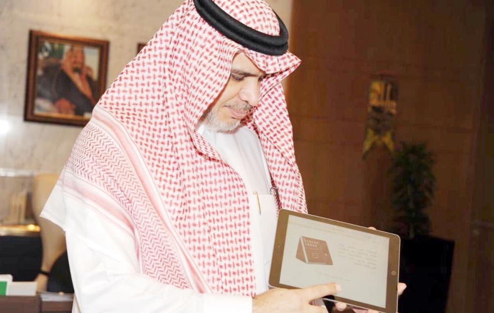 العيسى أثناء تدشين البصمة في مقر الوزارة أمس. (عكاظ)
