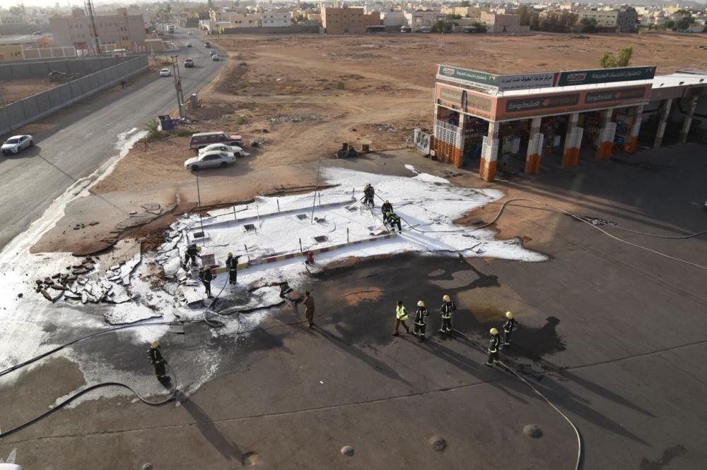 أخمدت فرق الدفاع المدني بمدينة سكاكا حريقاً بخزان إحدى محطات الوقود إثر انفجار لحظي لأبخرة الوقود.