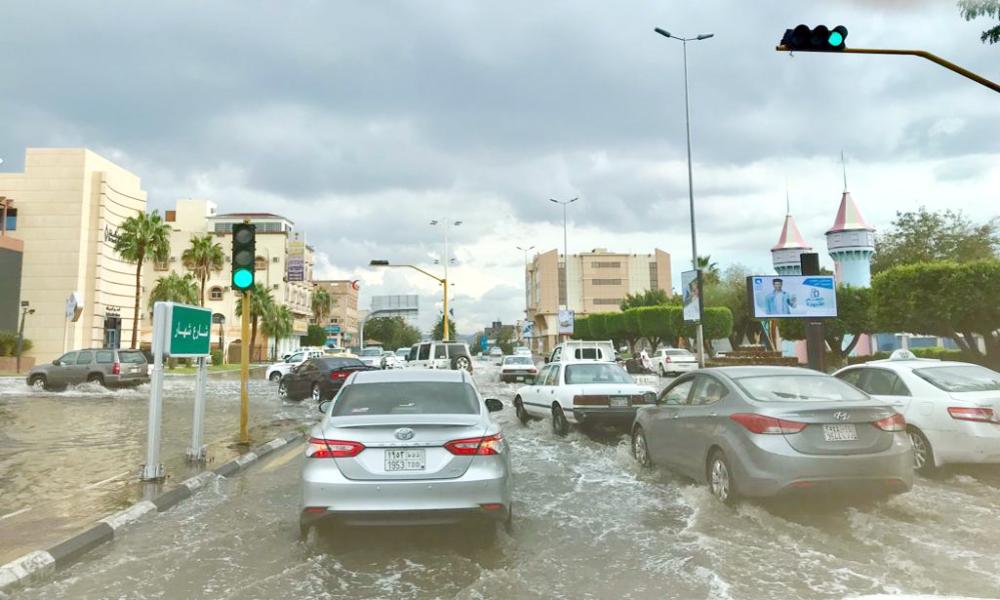 الأمطار تحول شوارع الطائف إلى بحيرات