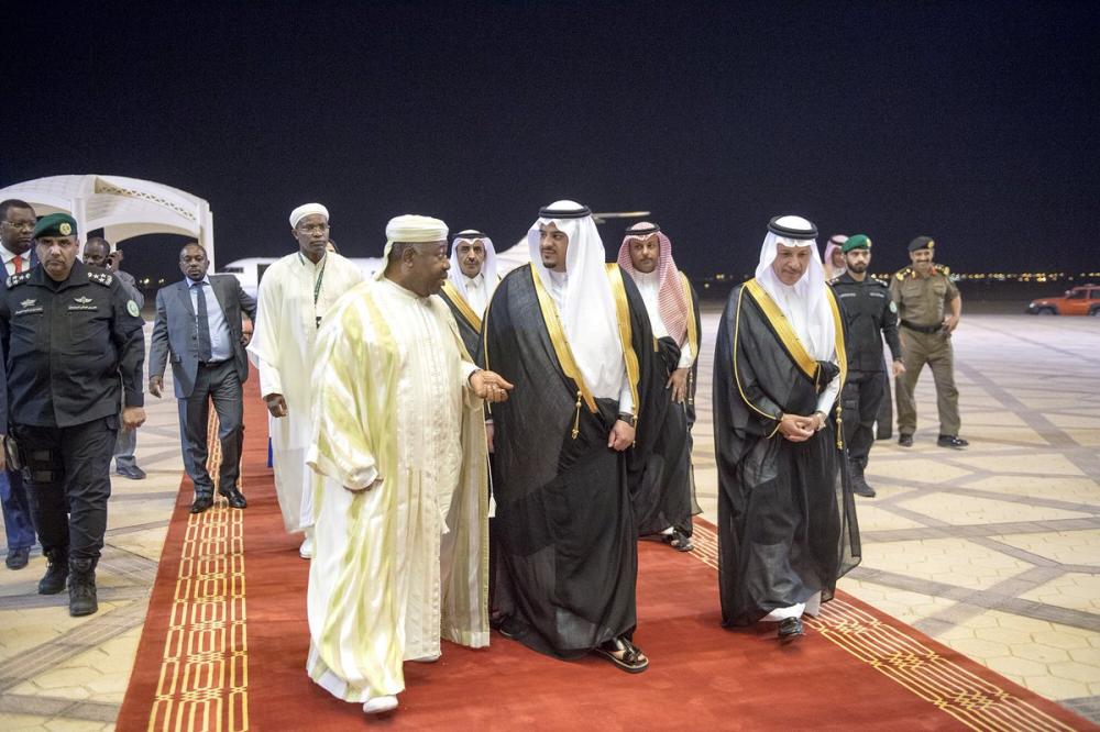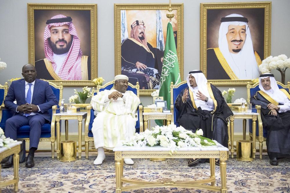 وكان في استقبال فخامته في الصالة الملكية بمطار الملك خالد الدولي، نائب أمير منطقة الرياض الأمير محمد بن عبدالرحمن بن عبدالعزيز ووزير الدولة لشؤون الدول الإفريقية أحمد بن عبد العزيز قطان وسفير جمهورية الجابون لدى المملكة أسماعيل جنيى ومندوب عن المراسم الملكية .