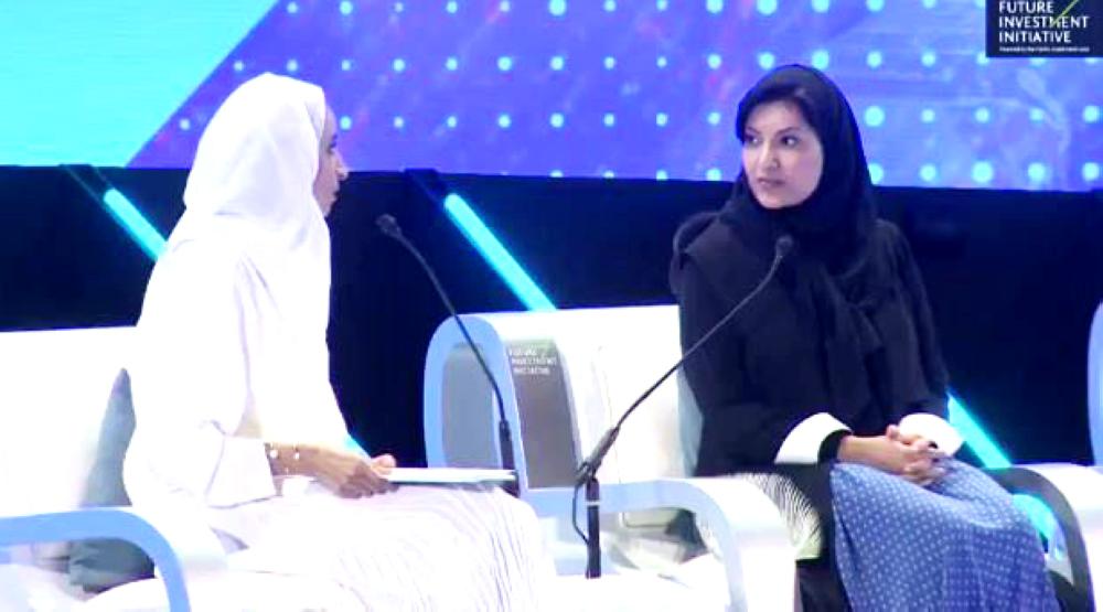 الأميرة ريما بنت بندر متحدثة في مبادرة الاستثمار. (عكاظ)