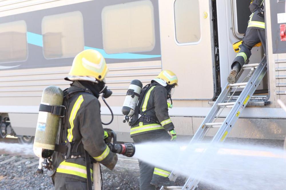 «سار» تجري فرضية حريق في عربات قطار الركاب بمحطة الجوف