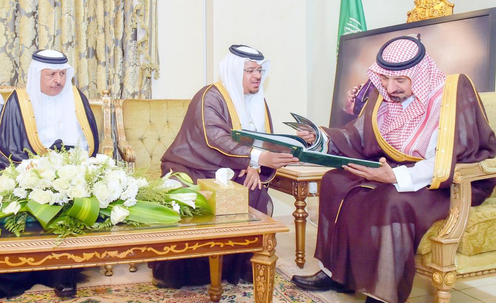 أمير نجران ملتقيا رئيس وأعضاء النادي الأدبي. (عكاظ)