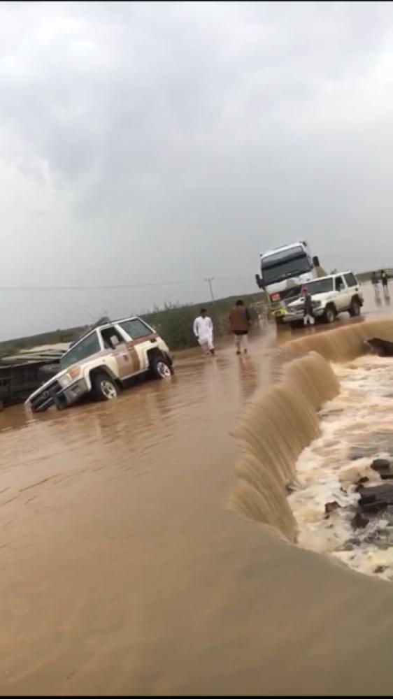 سيول منقولة في مهد الذهب تسبب خطورة على سالكي الطرق. (عكاظ)