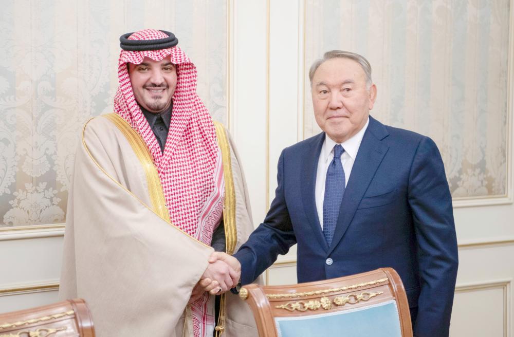 استعرض وزير الداخلية الأميرعبدالعزيز بن سعود بن نايف أمس (الخميس) مع رئيس جمهورية كازاخستان نور سلطان نزار باييف العلاقات الثنائية بين البلدين، وبحثا آخر مستجدات الأحداث على الساحة الدولية، وذلك بعد أن استقبل رئيس كازاخستان وزير الداخلية الأمير عبدالعزيز بن سعود بالقصر الرئاسي في العاصمة الكازاخستانية أستانا.