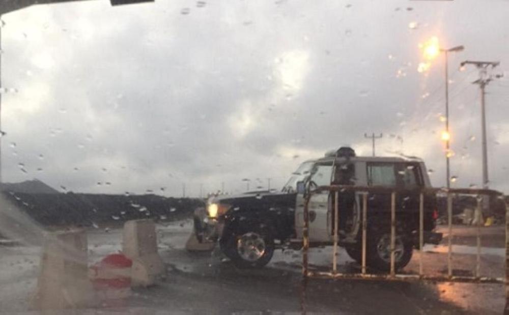 إغلاق طريق قريضة من قِبل دوريات الشرطة.
