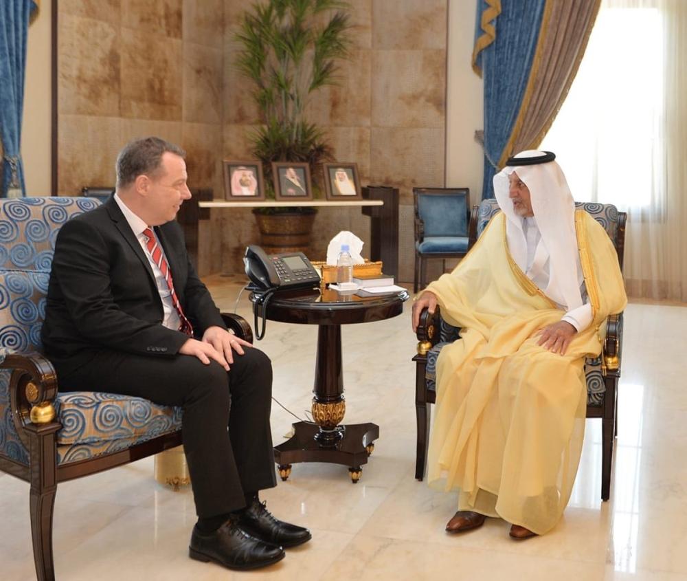 استقبل مستشار خادم الحرمين الشريفين، أمير منطقة مكة المكرمة، الأمير خالد الفيصل، في مقر الإمارة بجدة، القنصل العام البريطاني المُعين حديثاً، سيف الدين أشر.
