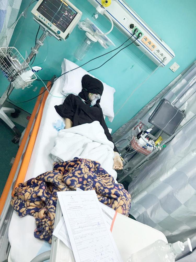 الفتاة المصابة تتلقى العلاج في المستشفى. (عكاظ)