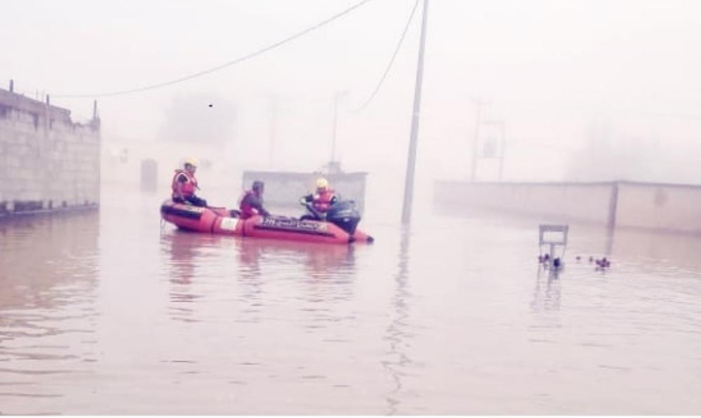 أوضح المتحدث باسم مديرية الدفاع المدني بمنطقة الجوف النقيب عبدالرحمن بن عبدالعزيز الضويحي أنه تم إخلاء ثلاث قرى بمحافظة القريات وهي (باير والوادي والعقيلة) تم إيواؤهم بالكامل، وبين أن فرق الدفاع المدني بمحافظة القريات تمكنت من إنقاذ ٤١ شخصاً محتجزين بقرية باير، كما تم إنقاذ ثلاثة أشخاص بشعيب حصيدة الغربية دون إصابات ولله الحمد ولفت إلى أنه تم إخلاء وإيواء ١٤٠ أسرة مكونة من ١٠٢٨ شخصاً تضررت منازلهم من مياه الأمطار إلى أن تعود الأوضاع إلى طبيعتها تنسيقاً مع الجهات ذات العلاقة، إذ بلغ إجمالي عدد المحتجزين الذين تم إنقاذهم حتى الآن ١٤٩ دون إصابات عدا إصابة واحدة، مشيراً إلى أن معظم البلاغات التي تم استلامها تنحصر بدخول مياه الأمطار للمنازل واحتجاز مركبات وحوادث كهربائية وسقوط بعض الأسقف جراء الأمطار، وحذر النقيب الضويحي من مخاطر السيول والأمطار، مشدداً على ضرورة تعاون المواطنين والمقيمين واتباع تحذيرات الدفاع المدني وعدم المجازفة ودخول الأودية وقت جريانها والابتعاد عن مواقع تجمعات المياه والابتعاد عن مصادر الكهرباء أثناء هطول الأمطار وجريان السيول.