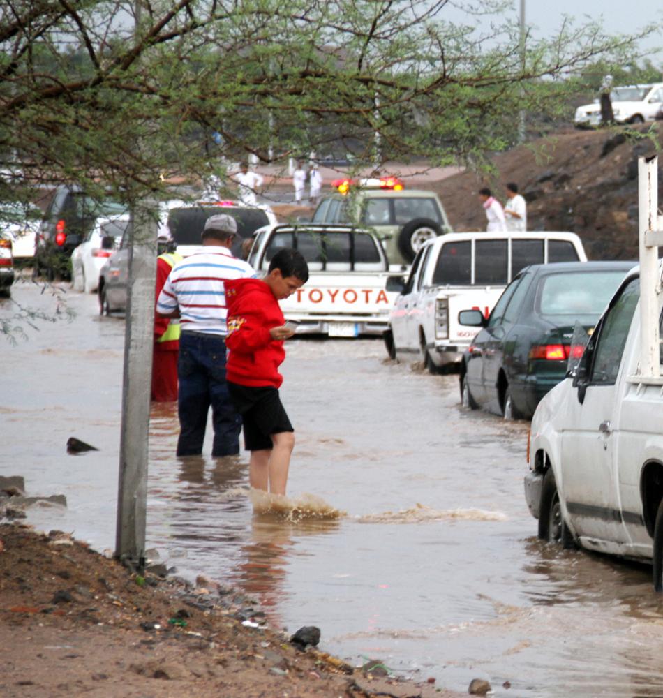توقف الحركة في أحد شوارع المدينة بسبب الأمطار. (تصوير: عبدالمجيد الدويني)