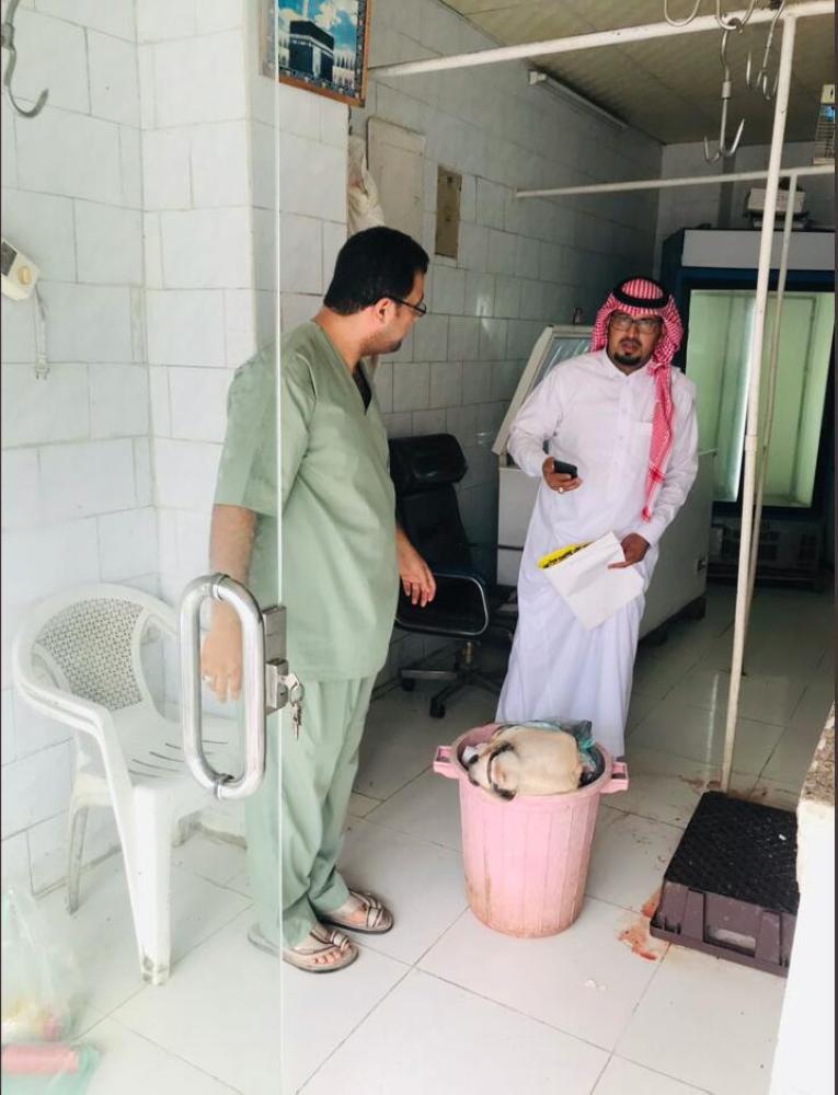 وأعلنت بلدية أضم أنه تمت مصادرة اللحوم وإقفال المجزرة.