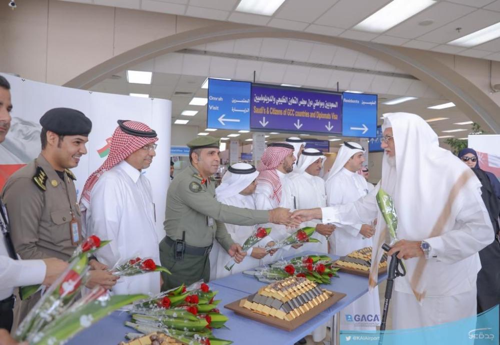 واستقبل مطار الملك خالد الدولي بالرياض، بمناسبة اليوم الوطني العماني الـ(48)، المسافرين القادمين من سلطنة عُمان بالورود والأعلام والهدايا التذكارية للاحتفال مع الاشقاء العُمانيين داخل المطار، كما صدح النشيد الوطني العُماني في أرجاء صالات المغادرة والقدوم، بينما شهدت صالات السفر بمطار الملك عبدالعزيز الدولي بجدة استقبال وتوديع الركاب القادمين والمغادرين بالورود والشوكولاتة، وتوزيع الأعلام الوطنية للبلدين الشقيقين وبعض الهدايا التذكارية الخاصة بهذه المناسبة.