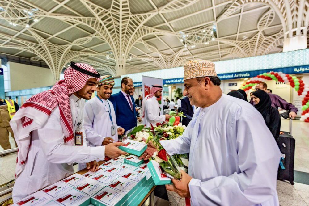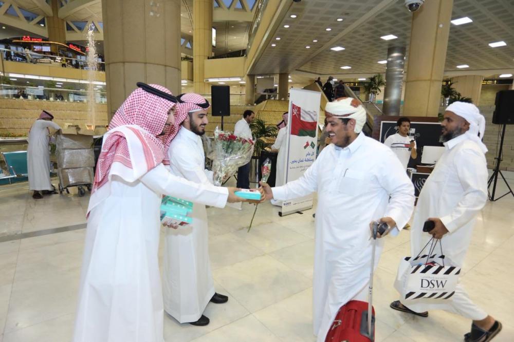 وفي مطار الأمير محمد بن عبد العزيز الدولي بالمدينة المنورة، تم استقبال المسافرين القادمين من سلطنة عُمان بالورود والأعلام والشوكولاتة، والاحتفال مع الأشقاء العُمانيين داخل المطار بتوزيع الهدايات التذكارية للمسافرين ومنسوبي مكتب الخطوط الجوية العُمانية داخل المطار.