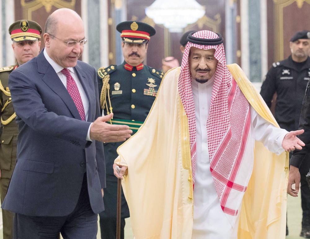 وكان خادم الحرمين الشريفين استقبل في قصر اليمامة بالرياض في وقت سابق أمس، الرئيس برهم صالح. كما كان في استقباله أمير منطقة الرياض الأمير فيصل بن بندر بن عبدالعزيز.