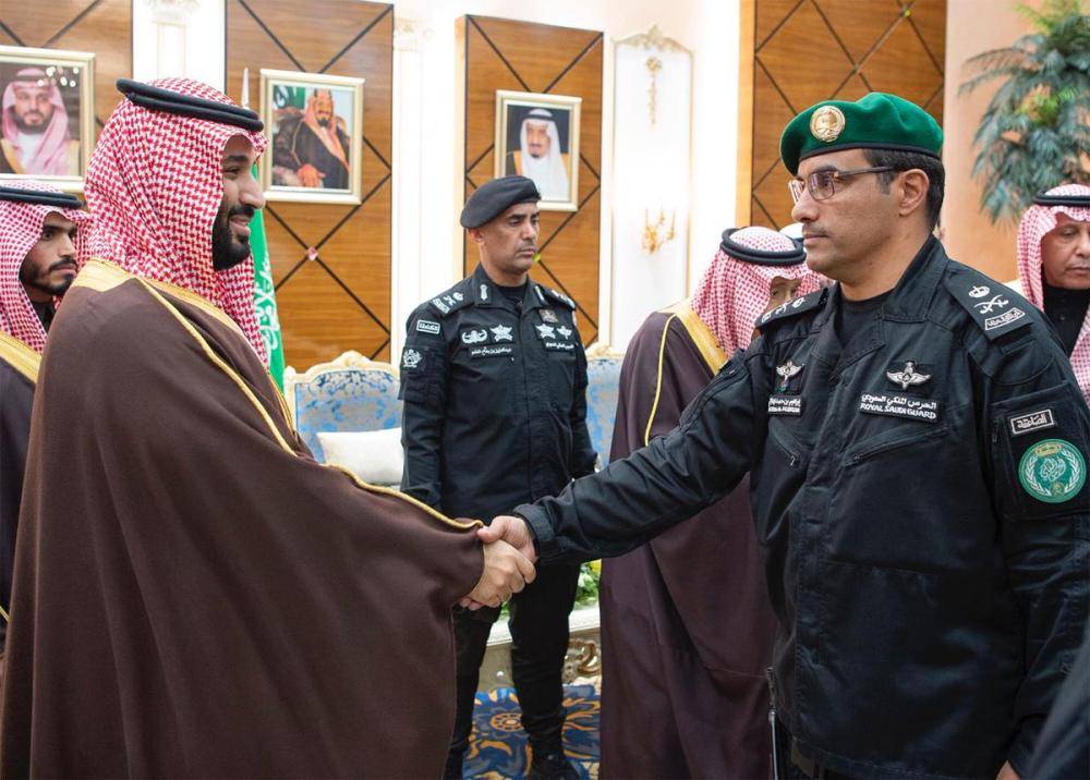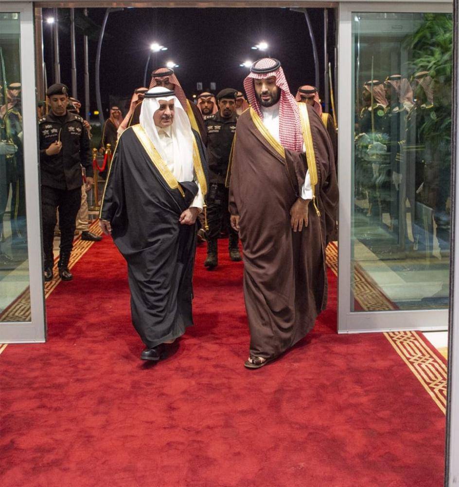 وقد وصل بمعية ولي العهد، المستشار بالديوان الملكي الأمير تركي بن محمد بن فهد بن عبدالعزيز، ووزير الداخلية الأمير عبدالعزيز بن سعود بن نايف بن عبدالعزيز.