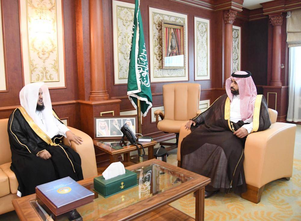الأمير محمد بن عبدالعزيز خلال استقباله الشيخ عبدالله الشراحيلي. (عكاظ)