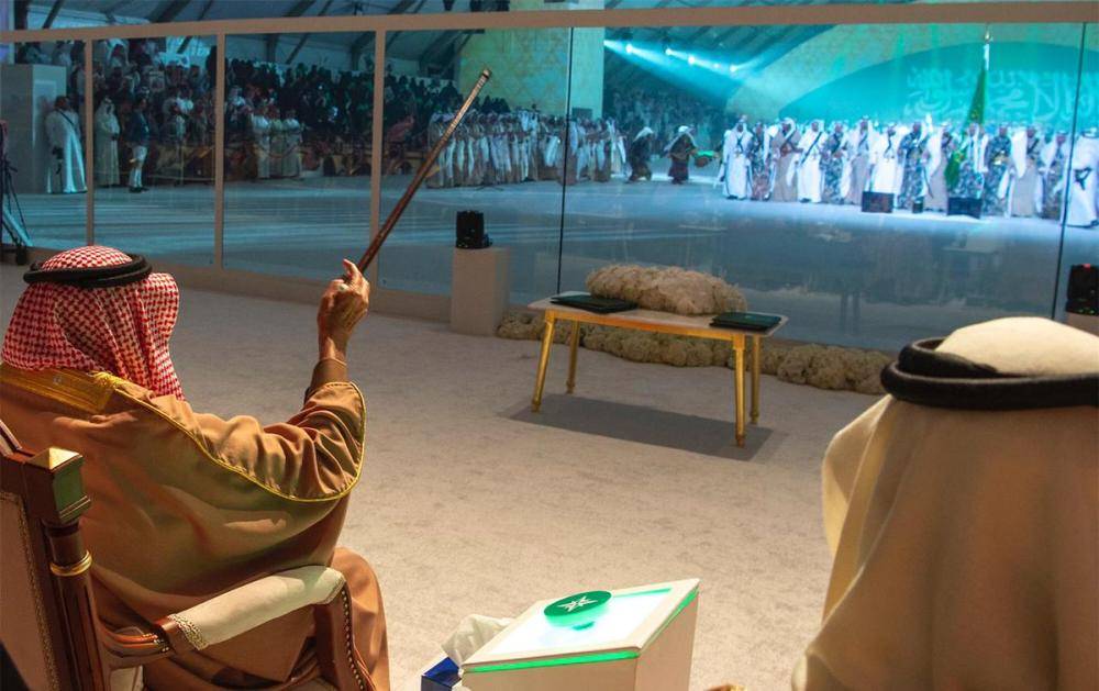 ثم أُديت العرضة السعودية، وشارك فيها خادم الحرمين الشريفين.