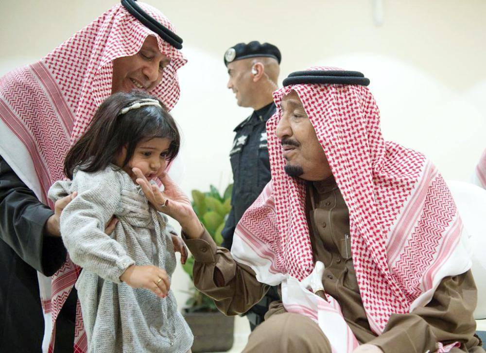 لبى خادم الحرمين الشريفين الملك سلمان بن عبدالعزيز رغبة طفلة سعودية تمنت لقاءه في مشهد يجسد الأبوة الحانية للملك سلمان.