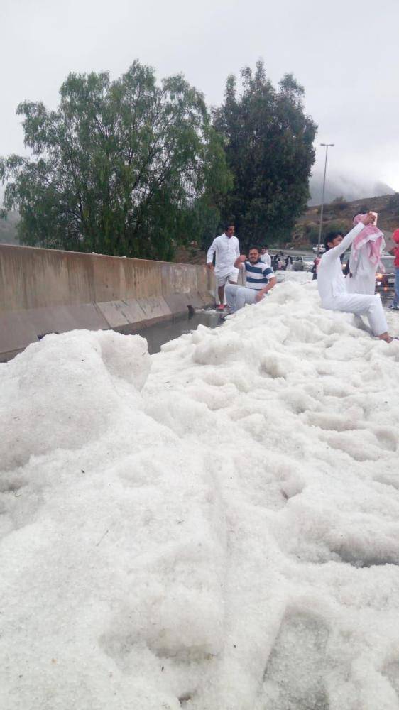 الطائف : أكوام البرد تستقطب عشاق التطعيس الثلجي