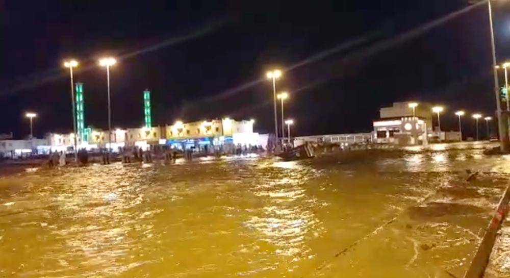 مياه السيل داهمت مدخل الليث. (عكاظ)