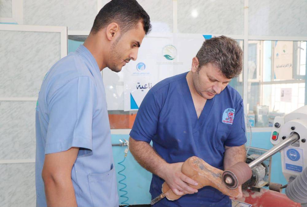 جانب من العمل في مركز الأطراف الصناعية بمحافظة مأرب.