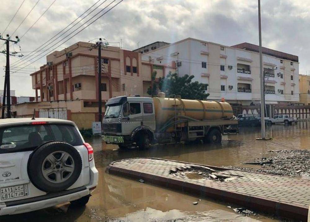 لا تزال آليات ومعدات بلدية الليث تنتشر في كافة أحياء محافظة الليث وتوجد في الميدان منذ أمس (السبت) لشفط مياه الأمطار التي غمرت شوارع المحافظة، والعمل على رفع الأتربة والرمال ومخلفات السيول التي اجتاحت الليث مساء الجمعة الماضية، ما أعاق الحركة المرورية، وكثفت بلدية الليث آليات جهود الشفط في المواقع الأكثر تضرراً مثل أحياء الكليبية وجنوب المحافظة ومواقع المدارس، وتم فتح شبكات التصريف لتسهيل دخول مياه الأمطار.