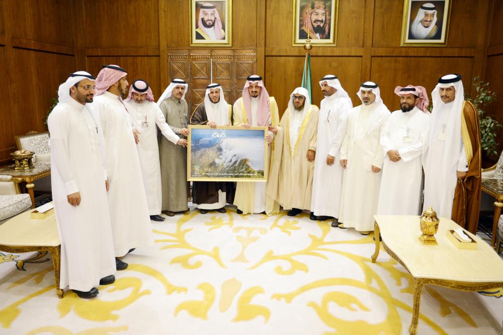 أمير عسير مع رئيس وأعضاء المجلس البلدي بالنماص. (عكاظ)