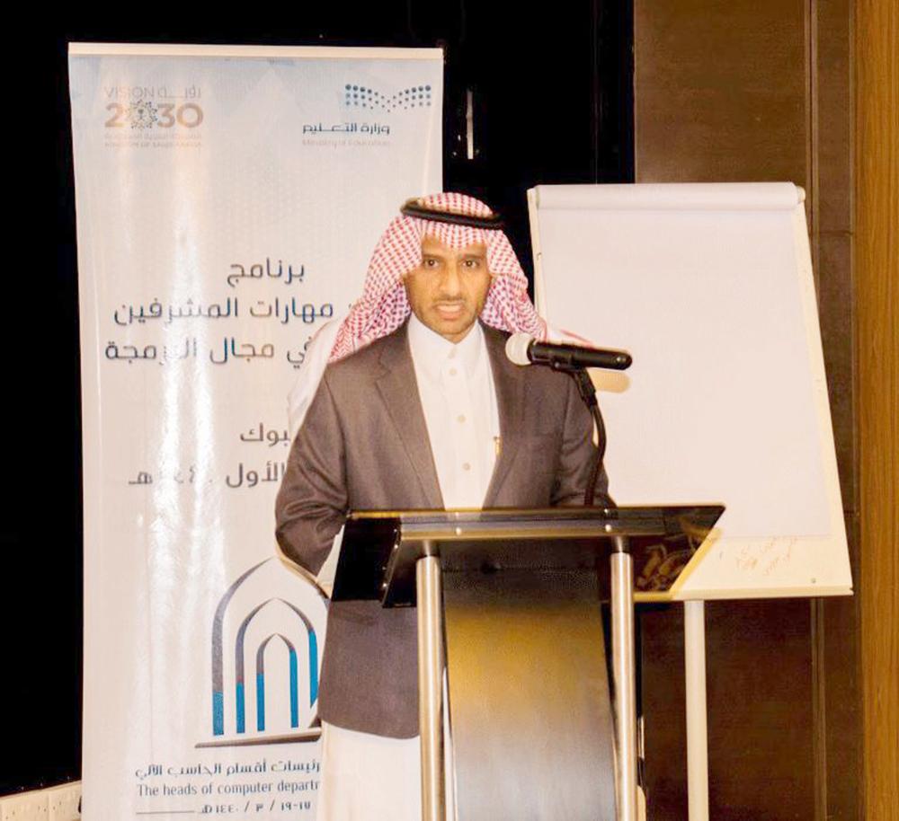 الغامدي خلال ملتقى رؤساء ورئيسات أقسام الحاسب. (عكاظ)