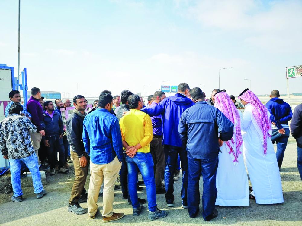 أنهى مكتب عمل الجبيل توقف أكثر من ٤٠ عاملا من جنسيات مختلفة تابعين لإحدى شركات المحافظة عن العمل اعتراضا على عدم صرف المستحقات المتأخرة، وذلك بتوجيه من مدير مكتب عمل الجبيل مطلق بن داهم القحطاني، إذ تم الوقوف على تجمع العمالة أمس الأول (الثلاثاء) من قبل مفتشي مكتب العمل، وشرطة محافظة الجبيل، وتم استدعاء مدير الموقع، وتوضيح مطالب العمالة له، كما تم إبلاغ العمالة بضرورة عدم التجمع، وأنه في حال وجود أي مطالبات مالية يتوجب التوجه إلى مكتب العمل للتقدم بمطالباتهم بالطرق الرسمية. وأوضح المطلق أنه تم إنهاء التجمع بواسطة الجهات الأمنية وعودة العمال لمباشرة عملهم. وأعلن العمال أنهم سيتقدمون بشكوى رسمية للمكتب في حال عدم حل مشكلاتهم من قبل الشركة خلال الأيام القادمة.