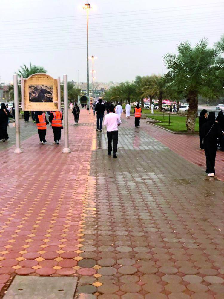 وكانت الأمطار بدأت عصر أمس الأول الجمعة وما زالت (مستمرة)، ولكنها هذه المرة كانت مصحوبة وبشكل كبير بدوي الرعود القوية ووميض البروق وبعض الصواعق وكانت غزارتها لافتة، إذ لم تشهدها المنطقة من قبل خلال هذا الموسم وامتلأت بسببها بعض طرق المدينة الرئيسية مما أدى إلى إعاقة الحركة المرورية خصوصا للمركبات الصغيرة، سالت على إثر هذه الأمطار الأودية والشعاب، وما زالت سماء المنطقة ملبدة بالغيوم.