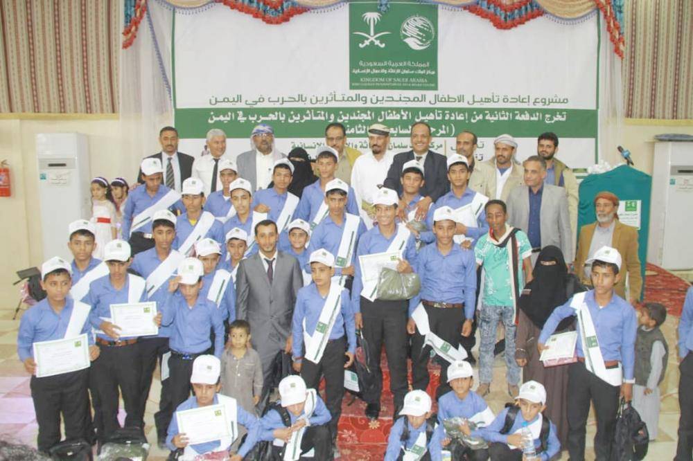 احتفل مركز الملك سلمان للإغاثة والأعمال الإنسانية في محافظة مأرب -شرقي اليمن- أمس (الخميس) بتخرج 27 طفلا جندتهم الميليشسيا الحوثية من الدورة الثانية من المرحلة السابعة والثامنة من مشروع إعادة تأهيل الأطفال المجندين والمتأثرين بالحرب في اليمن في محافظة مأرب الذي ينفذه بالشراكة مع مؤسسة وثاق للتوجه المدني اليمنية.