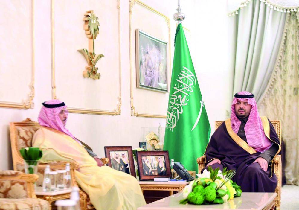 الأمير فيصل بن خالد مستقبلاً العقيد العتيبي. (عكاظ)
