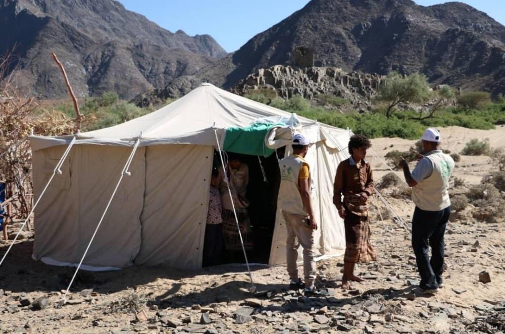 قام مركز الملك سلمان للإغاثة والأعمال الإنسانية أمس، بتوزيع 200 خيمة على 1,200 مستفيد في مديريتي ناطع ونعمان بمحافظة البيضاء.